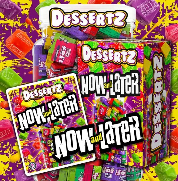 DESSERTZ NOW AND LATER is a vibrant, candy-inspired cannabis variety known for its bold flavor profile, eye-catching appearance, and well-balanced effects. Much like the classic chewy candy it’s named after, this strain delivers a sweet, fruity punch that lingers from the first inhale to the final exhale. Users often describe its flavor as a mix of tart berries, citrus zest, and sugary fruit candy, creating a mouthwatering experience that stands out in any lineup of dessert-themed strains.