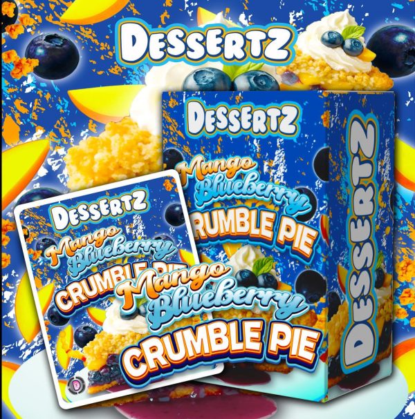 Overall, DESSERTZ Mango Blueberry Crumble Pie shines as a flavorful, aromatic, and visually striking strain that caters to both connoisseurs and casual users. Its blend of tropical fruit sweetness, berry depth, and pastry warmth creates a unique, mouthwatering experience, while its balanced effects offer both mental uplift and physical ease. Perfect for anyone seeking a dessert-themed strain that tastes as good as it feels.